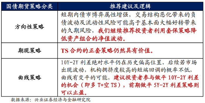 1)短期内债市博弈属性增强,交易结构恶化带来的负债波动及流动性风险可能高于基本面大幅好转带来的久期风险,我们继续推荐投资者利用套保策略降低资产组合的净值波动。