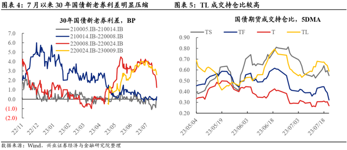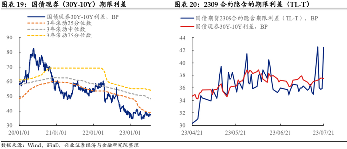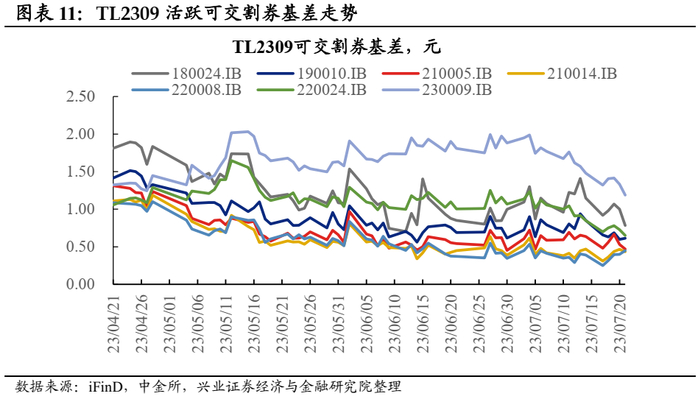 2)TL2309的CTD券为30年的老券,近期30年老券出现补涨行情,30年新老券利差明显压缩,这意味着即使基差不变,TL2309也会由于30年老券更大的收益率下行幅度而出现超涨。