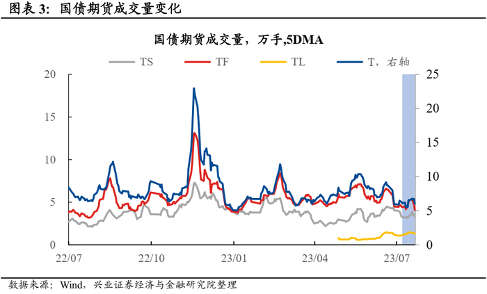4)从TL近月与远月合约持仓变化来看,近期TL2312有明显增仓,且TL跨期价差有所收窄,说明部分中期维度看多债市的资金可能已开始提前布局远月合约,这指向市场多头力量仍然较为强势。