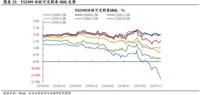 当前各品种基差处于偏低位置,且债市无大的回调风险,基差走扩的概率和幅度均不高。但是TS合约正套策略仍然具有价值。5月中旬以来,我们持续推荐TS合约的正套策略,当前这一策略仍然具有价值。当前TS2309最廉券230005.IB 的IRR在2%以上。若投资者能够获得较为稳定的低成本资金(比如R001的资金成本相对较低),则TS合约的正套策略也获得相对稳定的收益。