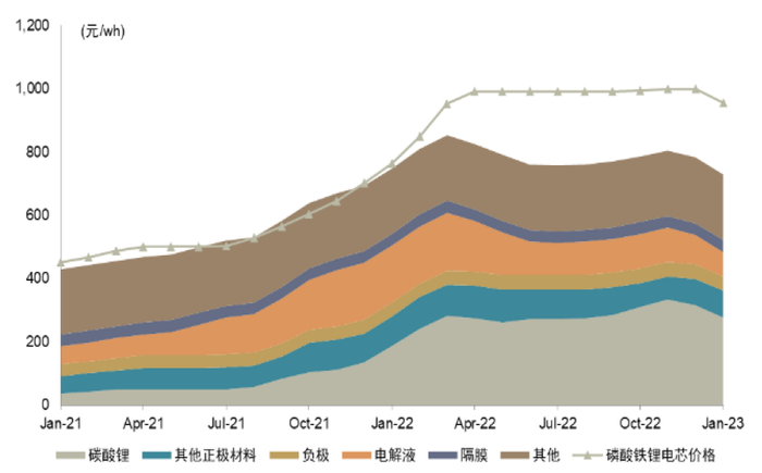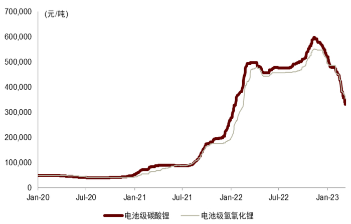 锂资源是新能源汽车的核心原材料,对动力电池成本具有重要影响。供需紧缺时期,锂盐价格的上涨导致电池成本的大幅增加。2020-2022年,新能源汽车需求的快速增长导致锂供需紧缺,电池级碳酸锂和氢氧化锂价格分别从底部到顶点上涨十几倍。正极材料是锂电池成本占比最大的部分,其生产成本主要受到锂盐价格影响,因此锂盐价格的大幅上涨带来电池成本上升,来自上游的成本压力在产业链下游逐级传导。电池成本的上涨导致新能源车企的盈利能力偏弱,限制了国内新能源汽车的降价空间。