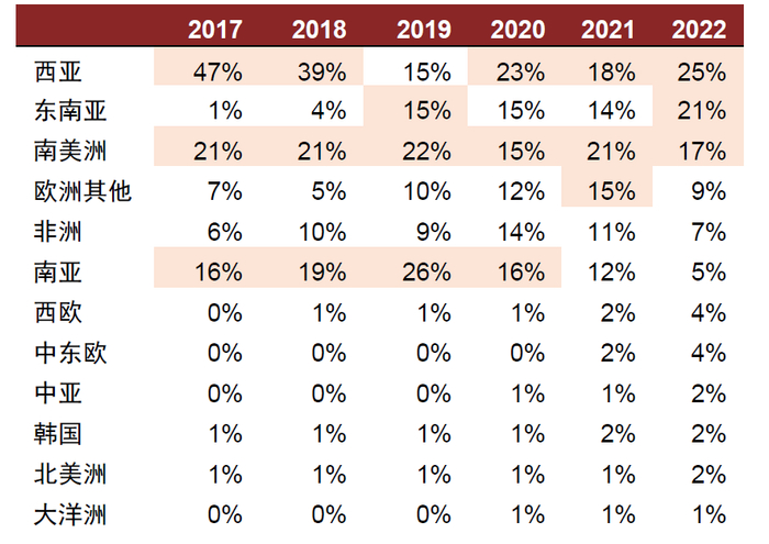 中东欧市场容量不大,但地处亚欧大陆中部,且具备汽车产业配套基础,有望作为中国汽车海外产能建设的重要基地。其他汽车市场规模有限的地区,我们认为短期内以出口叠加周边地区产能辐射或更具经济性。