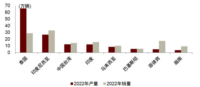 而相对地,往前展望,中国出口的新能源车具备高电动智能化特点、领先完备的产业链、更成熟的产品设计及中国制造优势,系中国工程师红利的产物,有望实现优质的产品产能和技术输出,在带路国家实现突围。但新能源汽车海外市场的快速突破并非一蹴而就,更需要关注、避免无序投资与产能过剩的问题。我们发现,部分国际车企出于自身战略考虑正在优化全球布局、出售过剩产能,这为中国车企提供了收购整合优质资产、缓解资本支出压力及减少经营风险的机会,也对原本工厂的员工、上下游合作伙伴产生利好。例如,泰国是汽车年产量最大的东南亚国家(2022年Marklines数据显示),丰田、日产、通用等国际车企在当地已有成熟的整车产能布局,2020年2月长城汽车宣布收购通用汽车的泰国罗勇府制造工厂。