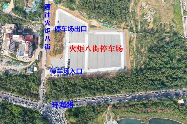 新投入使用的火炬八街停车场,位于鹿达花园小区西侧、环海路东侧,占地面积约2.5万平方米,设有694个机动车停车位,其中大型车停车位6个,小型车停车位688个。此处停车,2小时内免费,超过2小时每小时收费2元。