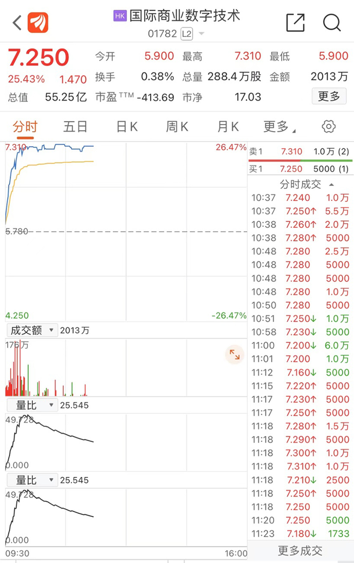 今日早盘,一家市值仅有55亿港元的上市公司国际商业数字技术涨幅居前,截至发稿涨25.43%。今年以来,该公司股价走势更是完全不受港股颓势影响,累计涨幅达到305%。