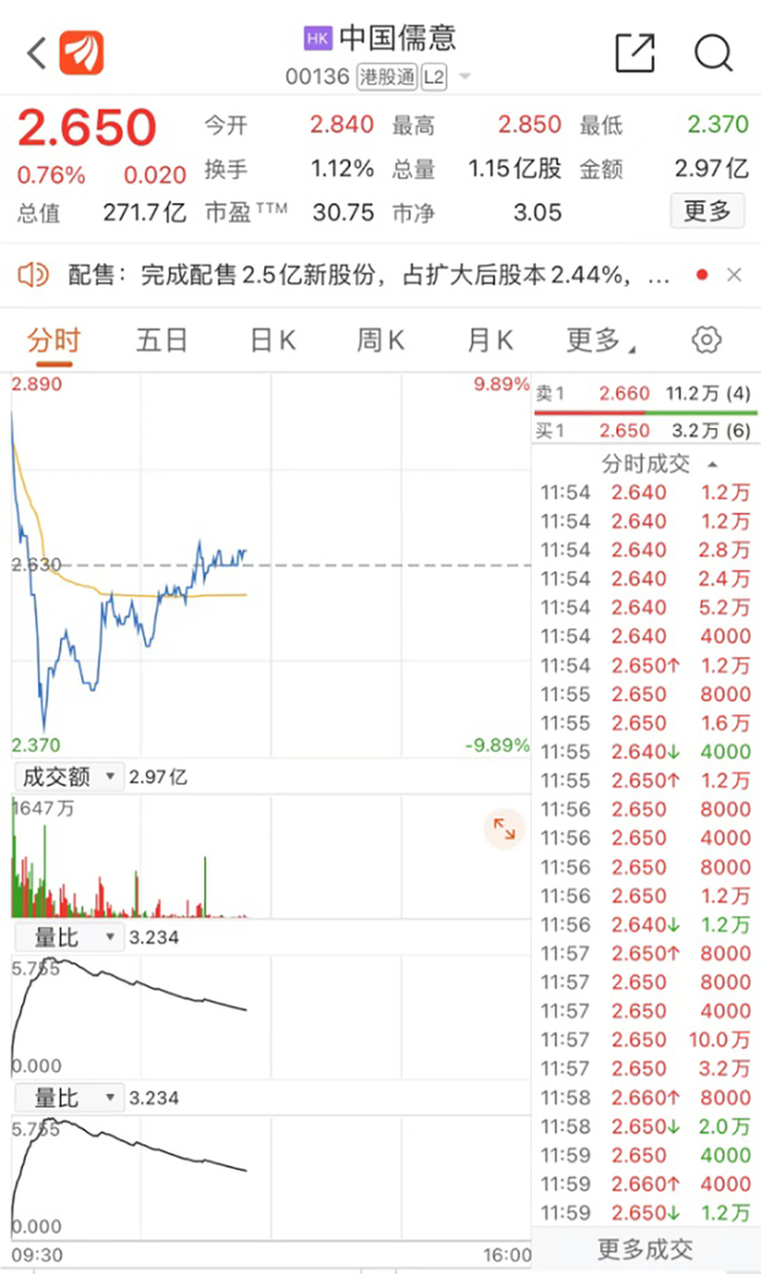 今日早盘,中国儒意股价一度涨超8%,不过涨幅迅速回落,截至发稿涨0.76%。