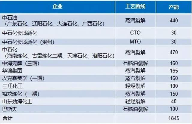 乙烯工业方面,目前,我国呈现“三分天下”的生产格局。其中,中石化乙烯总产能1503万吨/年(含合资),全国占比32%;中石油、中海油等央企乙烯总产能1415万吨/年,全国占比30%;其他经营主体乙烯产能合计1832万吨/年,全国占比38%。