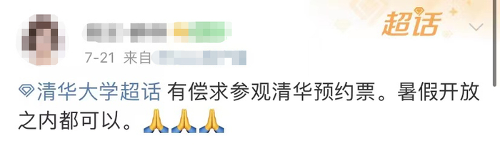 和张恒有着类似感受的游客不在少数。记者注意到,目前,多个社交平台上均有多条涉及“清北预约抢票攻略”“有偿清北预约”的讨论。