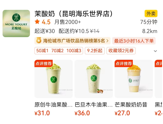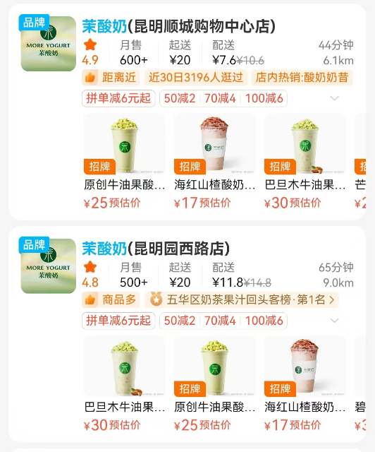 茉酸奶在昆明开有多家门店