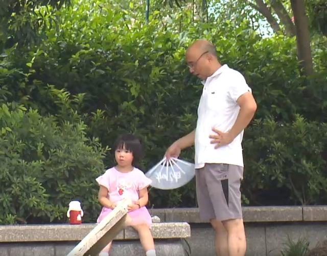 为了让孩子稍微凉快一点,把扇子带着给她扇扇风,希望她能舒服一点。