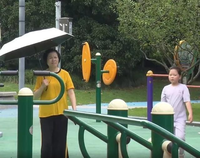 今天上午,天空阴晴不定。大暑已至,正是一年中天气最热、湿气最重的节气,金山好人公园较往常显得冷清了不少。外出的市民们有的打伞遮阳,有的拿着扇子帮孩子避暑散热。