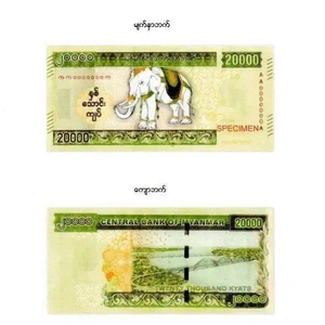 据《缅甸金凤凰中文报》报道,本次新发行的20000缅元纸币呈浅绿色,长15厘米、宽7厘米。纸币正面上方印有“缅甸中央银行”字样,中部印有极具缅甸艺术风格的瑞兽白象图案,白象右侧印有缅文版“两万缅元”字样。纸币正面的三个角分别印有缅文和英文的面值数字,钞票号码则以水平缅文、垂直英语的方式打印。此外,正面左侧还嵌有白象头部的水印图像,两侧边缘印有12条可供视障人士触摸感知的特征短线。