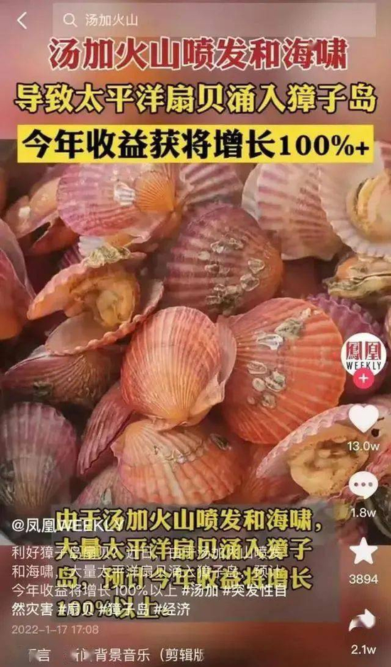 但是人家偏不?獐子岛扇贝是有情怀的,有赚钱机会,从不给老外,于是“汤加火山导致獐子岛业绩翻番”的新闻报道,导致獐子岛连续涨停,獐子岛董秘出面“辟谣”,股价更是继续涨。