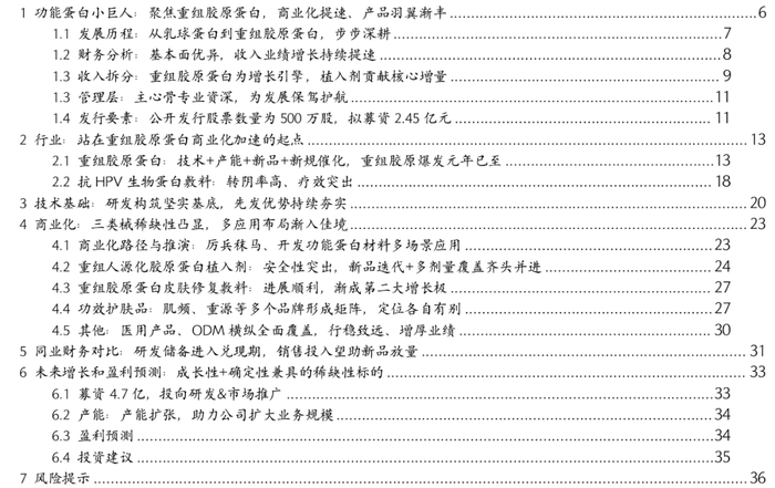 1 功能蛋白小巨人:聚焦重组胶原蛋白,商业化提速、产品羽翼渐丰