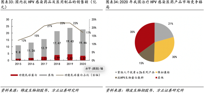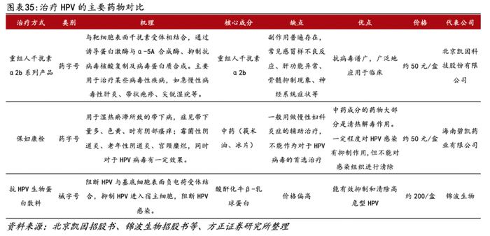 目前,临床上常用的治疗HPV的方法包括重组人干扰素α-2b外用剂型、中药制剂保妇康栓和抗HPV生物蛋白敷料。2020年我国治疗HPV感染的医药产品中,抗HPV蛋白产品的市场份额为14.58%。