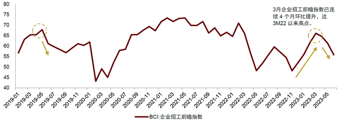 图表:企业招工前瞻指数3月达到高点,4-6月受季节性影响环比有降