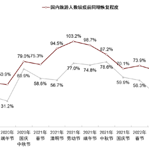图表:2020年以来节假日国内旅游人数及收入较疫前同期恢复程度