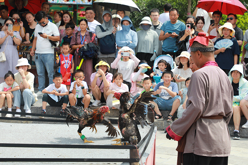 斗鸡表演——在大师坊观看精彩绝伦的斗鸡表演,看斗鸡雄赳赳,气昂昂的的对战。