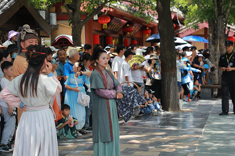 大宋科举——表演地点在四方院,会随机邀请两到三位游客参与考试,参与者还会换上宋代汉服、化身赶考的举子进入考场答题,最终胜出可以获得奖品。