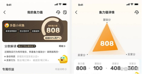 闲鱼还推出自有信用分体系“鱼力值”以及用户印象,即针对用户在闲鱼内的行为进行评价,让普通用户在交易中拥有更精准的评价体系,允许用户为他人添加用户标签,增加交易确定性和信任度。