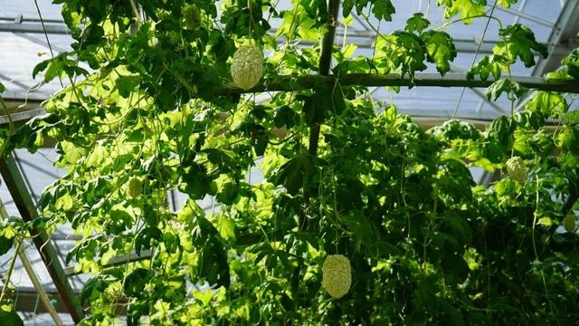 “苹果苦瓜”的生长温度在22℃至30℃,与普通苦瓜相比,其果实密度更小,产量低很多。目前,九丰农业基地内的2亩“苹果苦瓜”已经成熟上市。