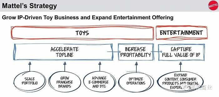 美泰也热衷于探索IP在玩具以外的价值,扩大娱乐业务,在NBC黄金时段推出了Hot Wheels终极挑战、芭比梦想之家,新的家居改造比赛。Hot Wheels的赛车游戏在PlayStation和iOS平台上推出,还有新巡演,推出发行业务,与服饰品牌Gap建立合作。