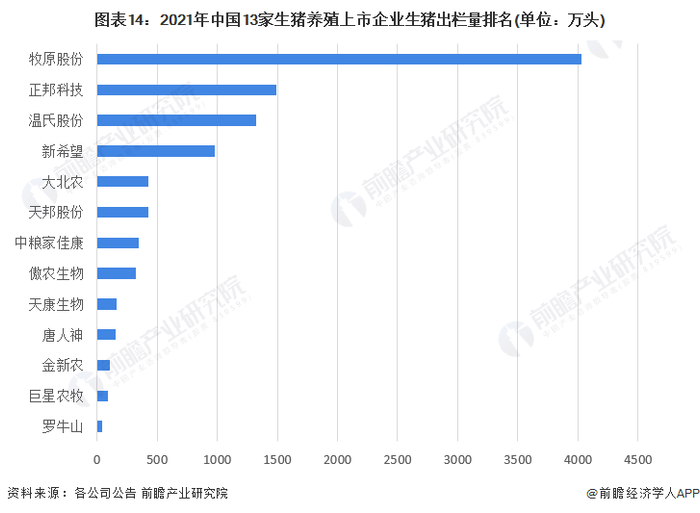行业竞争格局:牧原股份生猪出栏量遥遥领先