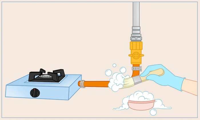 注意事项6:定期用肥皂水检查检查是否有漏气情况,重点涂抹管道连接位置和胶管,如有气泡鼓起,就是漏气点。