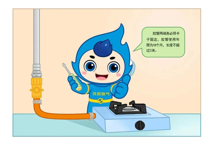 注意事项5:勤检查胶管是否脱落,一般燃气胶管长时间使用容易老化裂口而漏气发生事故,所以使用一般燃气胶管不宜超过2米,且不能穿墙,使用寿命为18个月,到期应及时更换。应随时检查胶管情况是否存在弯折、拉伸、龟裂、损及老化现象,软管及接口是否漏气,接头是否松脱等。建议使用正规厂家生产的不锈钢金属波纹软管。
