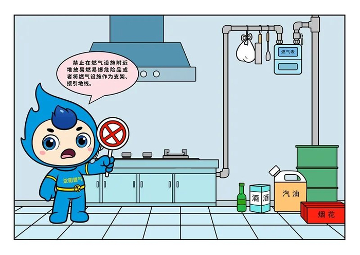 注意事项2:不要在燃气管道上搭、挂其他物品,以免管道受力变形、漏气。