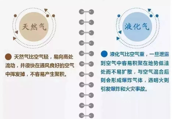 这两种燃气的成分、特性不同一旦发生跑、漏气等意外情况所采取的措施当然也有差异~