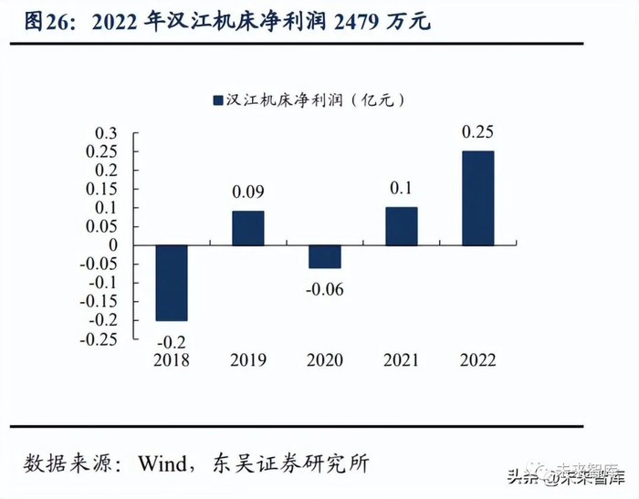 秦川机床下设子公司汉江机床专门负责丝杠导轨业务,其规模&竞争实力处于国内 第一梯队。1)从规模来看,处于国产厂商前列:汉江机床 2022 年营收达 4.0 亿元,同比+28.8%, 实现净利润 2479 万元,同比+162.2%,在行业景气度较低的背景下逆势增长。2)从竞争优势来看:①丝杠导轨业务历史悠久,技术沉淀深厚:汉江机床专业从事 滚动功能部件 50 余年,是中国机床工具工业协会滚动功能部件分会的会长单位。2020 年,汉江机床完成滚柱直线导轨副等 15 项丝杠产业新产品开发,完成大导程螺母加工 工艺等科研创新工作 8 项;③拥有领先的螺纹磨削技术:汉江机床是国内螺纹磨床龙 头,掌握了螺纹磨削核心技术,其中丝杠导轨产品精度等级可达 P2-P3,引领核心滚动 功能件进口替代;③磨床与丝杠导轨业务协同发展:高精度磨床是丝杠导轨生产的必要 设备,公司磨床和滚动功能件业务的无缝对接有效促进研发的良性循环。3)产能方面也已积极布局:2023 年 6 月 26 日,公司发布公告,2022 年定增共募 集资金总额 12.3 亿元,主要聚焦于高端产品研发扩产。其中包括主要应用在新能源汽车 领域滚动功能部件研发与产业化建设项目,项目拟建设滚珠丝杠副、滚珠(柱)导轨副 数字化车间。项目达产后预计增加滚珠丝杠/精密螺杆副产能 28 万件/年、滑动直线导轨 产能 13 万米/年、配套的螺母及滑块产能 30 万件/年及 26 万件/年。