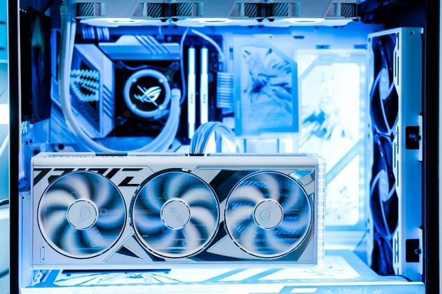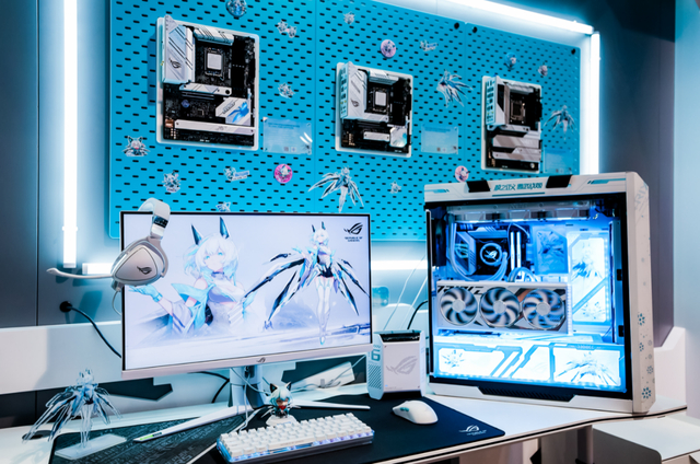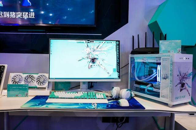 作为ROG展区的颜值巅峰,ROG吹雪区显然是参展玩家们的必逛点位。这里不仅有吹雪姬COSER小姐姐与玩家们亲切合影打卡,还可以一览ROG吹雪全家桶的真容!ROG吹雪全家桶采用华硕ROG STRIX RTX4080 O16G WHITE白色版显卡,外观采用了冰雪主题的白色主色调,纯白的金属外壳和耀眼的ROG logo,让这一代显卡颜值来到了新的高度。