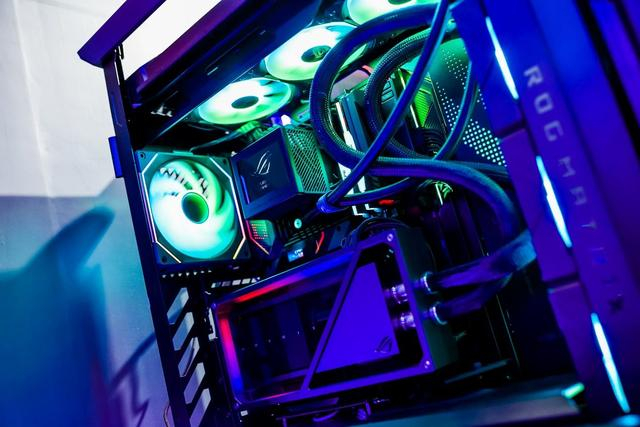 在ROG电竞房里,最亮眼的旗舰ROG全家桶中,采用ROG MATRIX RTX 4090骇客显卡,是玩家期待已久旗舰产品,也是市场上第一款在GPU芯片上搭配液态金属冷却功能的液冷显卡!其具有极高的超频能力,以及高效冷静的散热性能,助力玩家随时释放巅峰战力。