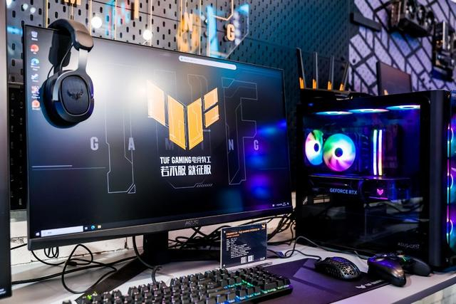 对于想要亲自体验游戏对战的玩家们来说,现场的TUF GAMING展区则不容错过!展区分别为玩家们准备了TUF GAMING背置1.0解决方案,和TUF GAMING电竞全家桶两套配置。华硕TUF GAMING电竞全家桶中,采用了TUF GAMING RTX4090 024G GAMING显卡。其采用了新一代TUF GAMING家族式设计,主打硬朗的军事风格,拥有尖端级的做工用料。