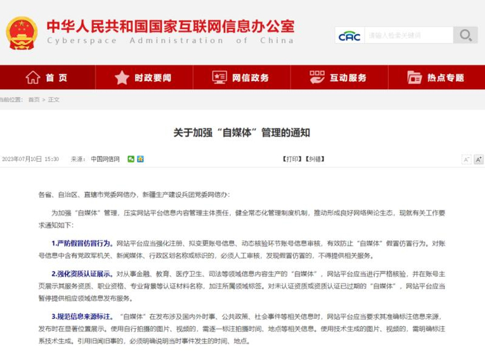 自媒体凭借互动强、更新快、传播广等特点吸引大量用户,已经成为网络传播生态的重要一环。然而,一些“网络大V”通过蹭炒热点、“标题党”、编造虚假事件等方式吸引眼球、博取流量进而牟利,滋生出不少虚假、有害信息,扰乱网络空间正常秩序。为整治自媒体乱象,中央网信办再出新规,从强化资质认证、加强谣言治理、规范账号运营等13个方面入手,要求网站平台压实信息内容管理主体责任,以常态化管理制度机制,推动形成良好网络舆论生态。