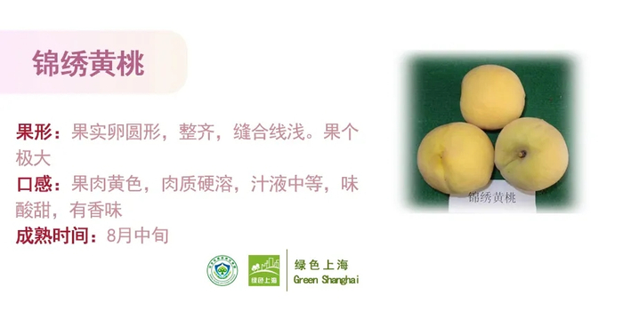 在众多黄桃品类中,奉贤黄桃其果皮橙黄,果肉金黄;肉质软糯,多汁,味甜,芳香浓郁,是黄桃中的上品,一直深受消费者青睐。它也位列上海15个农产品获得国家农产品地理标志其中。