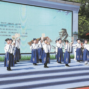 在文化长廊聆听五行亭中医药诗歌朗诵、观赏中药材展示墙标本、触摸种植园中草药植物,在体验区参加中医药猜谜、手工香囊制作、耳穴贴豆体验、八段锦教学、中草药生长VR观摩等各式各样的中医药文化游园活动……成都石室联合中学的学生们深深沉浸在中医药文化的氛围中。