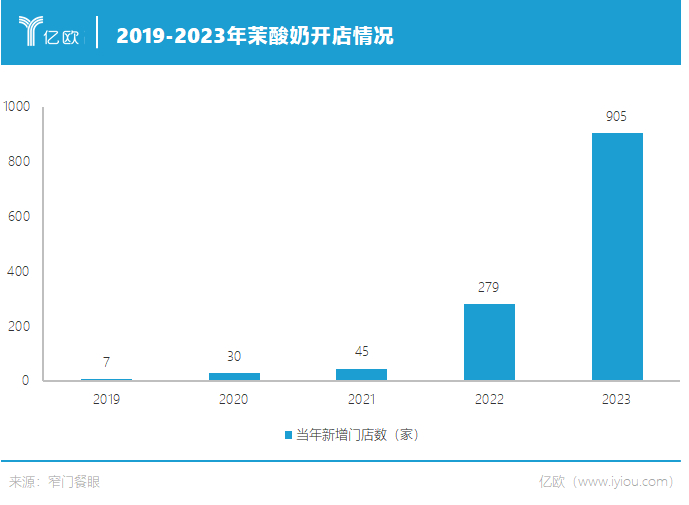 窄门餐眼数据显示,茉酸奶目前在全国有1238家门店,其中有905家都是2023年落地的。中国连锁经营协会数据显示,2022年10月到2023年2月,茉酸奶5个月期间核销用户数达148.9万人,其中新客数占比为61.31%。