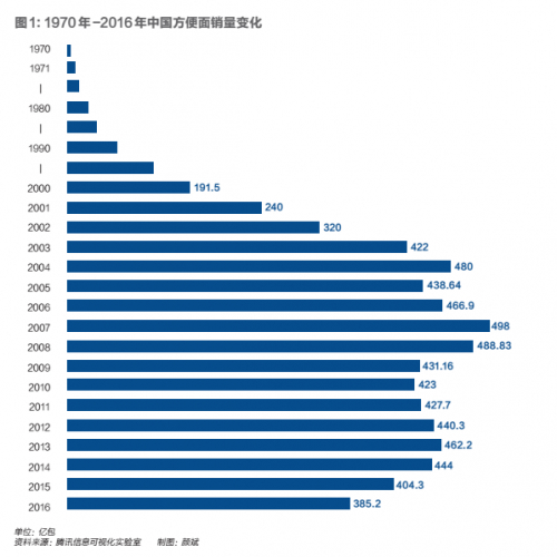 但中国方便面市场在2005年迎来转折点。2014年至2016年,中国的方便面市场经历了第三轮回落,这三年中国消费者减少了近80亿包方便面的食用量。