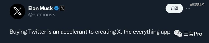 2022年10月5日,马斯克发推称,收购推特是加速了创建超级App“X”的进度。