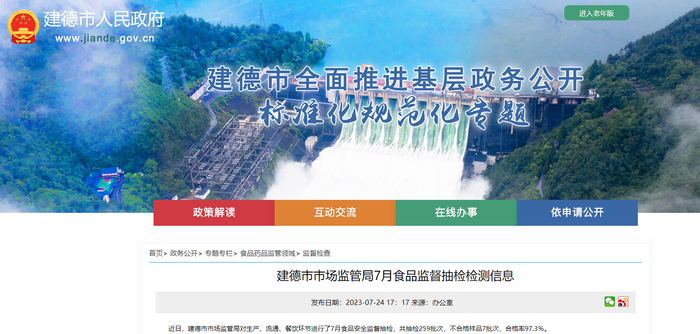建德市市场监管局2023年7月食品监督抽检合格产品信息