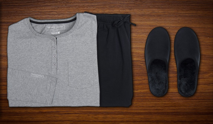 对于热衷于收藏飞行纪念品的乘客来说,睡衣显然是比洗漱包门槛更高的存在,往往只出现在长途夜间航班和超长航线的头等舱,部分航空公司也会在商务舱慷慨地提供。卡塔尔航空的睡衣来自英国本土家居服装品牌The White Company,以优雅素净风格而闻名,尽可能避免染色和绣花等工艺,注重简单大方的设计和精细有序的做工,以及选用上好的天然材料。在长途飞行中,一件纯色休闲睡衣带来的不仅是舒适的质感,更是一个柔软的好梦。