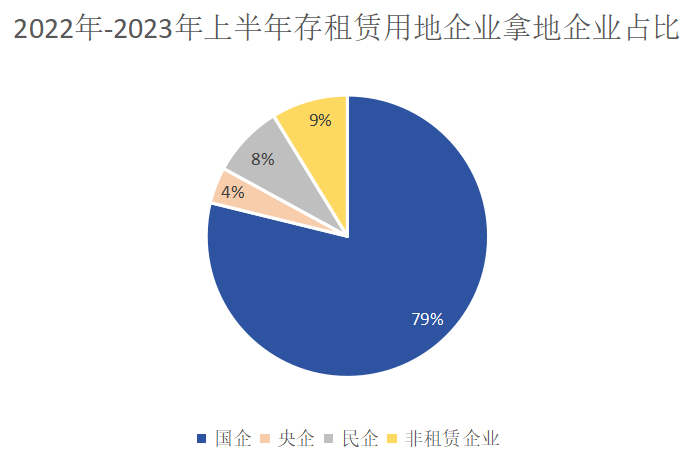 在土地方面,2022年至2023年上半年22座重点监测城市城纯租赁用地拿地企业共计约560万平方米,其中国企占比79%,央企占比4%,民企拿地仅仅占比8%,即国央企总计拿地占比83%,且在8%的民企拿地中,存在大场镇政府控股1.8%的上海锦秋房地产有限公司。