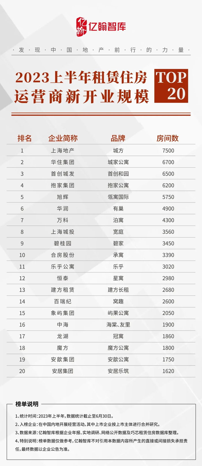 2023上半年租赁住房运营商新开业规模TOP20研究成果发布