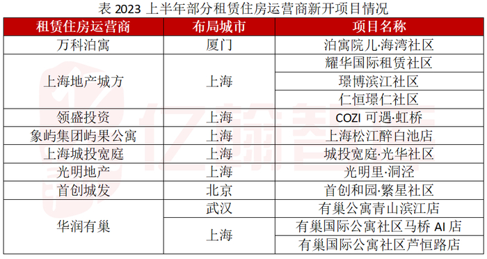 上半年,长租行业迎来集中开业潮,多项目集中入市。上海地产城方、万科泊寓、华润有巢、领盛投资、首创城发、城投宽庭等企业均有新项目入市。