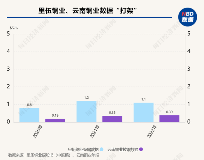 比较可以发现,云南铜业披露的数据和里伍铜业披露的数据差距巨大。