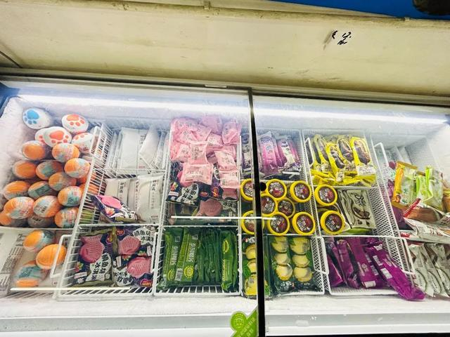 据店员介绍,店铺从6月份就开始丰富冷饮种类,现在店铺约有100余款雪糕。不仅有雪宝、玉米香、盐水棒冰、光明冰砖等大家心心念念的童年记忆款,还有梦龙、可爱多、钟薛高等近年的流行款。