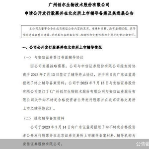 再战北交所,创尔生物更换了辅导机构。公告称,因发展战略需要,公司与中信证券经友好协商于2023年7月13日签订了辅导终止协议,并于同日向广东证监局报送了终止辅导备案资料;公司随即与安信证券签订了《广州创尔生物技术股份有限公司与安信证券股份有限公司关于向不特定合格投资者公开发行股票并在北京证券交易所上市之辅导协议》。