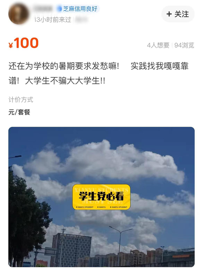 广州某“双一流”高校大学生小曾则因备考公务员无暇实习,“暑假是黄金备考期,我想抓住上岸机会,就在社交平台花200块盖了个章,这家公司应该是真实存在的,没什么问题。学校只看有没有交报告,不会去查有没有真实习。”
